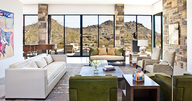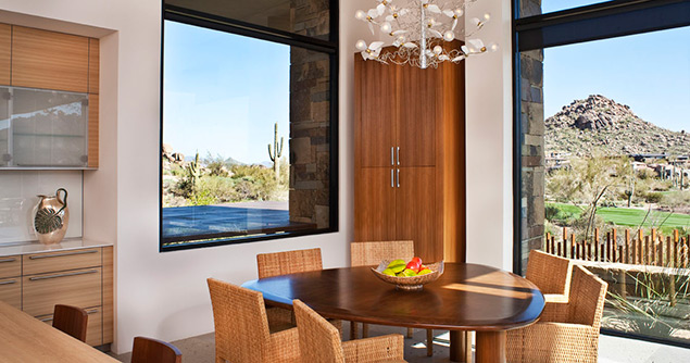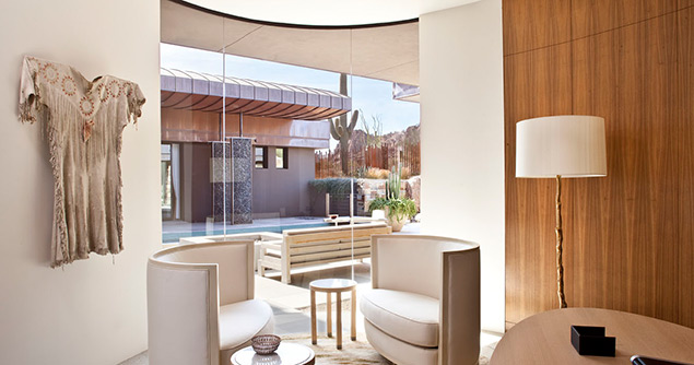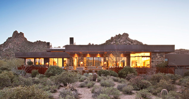 This contemporary home in Arizona is set on the desert floor among the craggy peaks of Scottsdale.